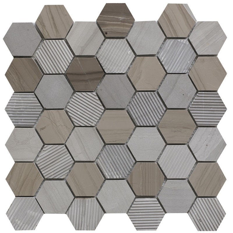 Natural Stone V Mist Stone Hexagon Mixed Finish Marble Mosaic... Price £15.30 per sheet Add to cart