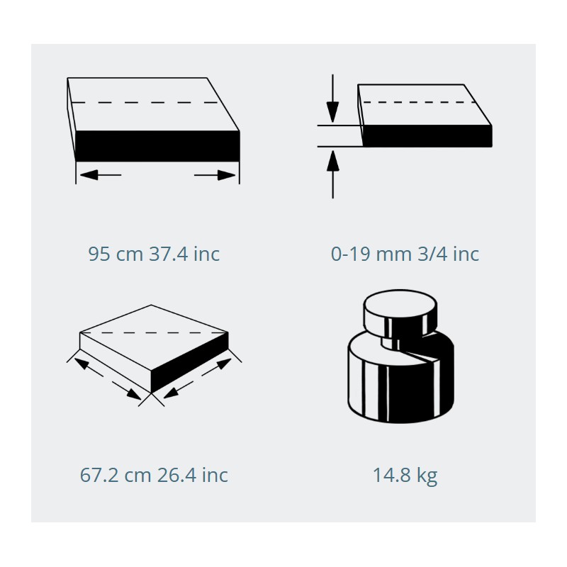 Front measurement - Allows measuring on both right and left (410 - 0 - 410 mm) for narrow and long tile cuts.